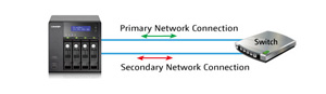 The LAN ports of the Turbo NAS can be configured in failover mode that allows the Turbo NAS to sustain the failure of one network port and provide continuous services. |