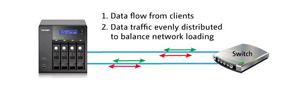 The LAN ports of the Turbo NAS can be configured in load balancing mode for bandwidth aggregation to boost file transfer speeds. It works with managed Ethernet switch with 802.3ad configured. |